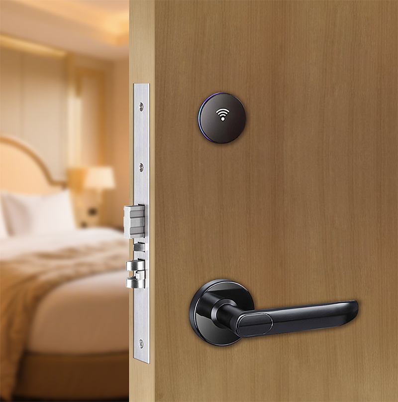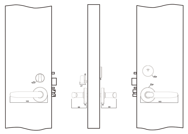 表面工艺:锌合金及铝合金材料。 材 质:把手采用锌合金材质,结构采用空转设计。 芯 片: I C 卡片采用进口芯片,16扇区可多重加密。 电 源:4节1.5V碱性电池,正常连续开启15000次左右或1—1.5年左右。 开锁记录:锁内“存储器”储存最新的2000条,机械钥匙开启也有开锁记录。 欠压提示:电池电压低于4.8V(±0.1)时,会发出“嘀嘀嘀”3声的低压报警提示,红灯闪烁,还能开门100次。 应急开启:不受任何控制,即使方舌反锁,也能打开。 机械钥匙:完全独立的机械应急开锁机构,高安全机械钥匙,确保紧急情况下门锁仍能正常开启。 配置锁体:采用70倒装大锁体。