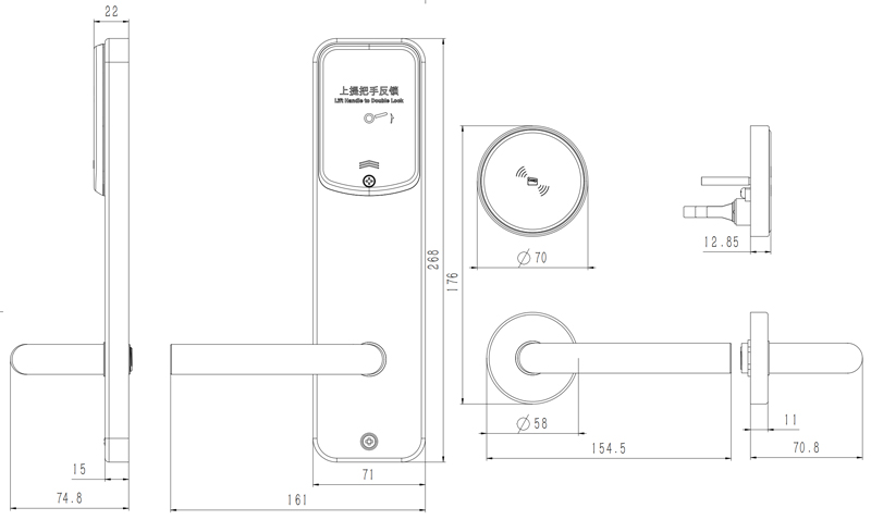 适用门厚:50-70mm(特殊厚度需要定制)。