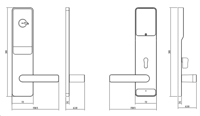 材 质:铝合金。 电 源:4节AA碱性电池(4.8-6V),开门次数大于10000次。 开锁记录:2000条(含机械钥匙开锁记录)。 欠压提示:当电池电量低于4.8V时开锁会有声光提示。 假锁报警:斜舌未完全进入锁门状态,门锁会假锁报警。 机械钥匙:备用,确保门锁紧急时开启门锁,可按用户定做成单开或通开。 钥匙容量:889个。 配置锁体:7098倒装锁体。 适用门厚:40mm-70mm。