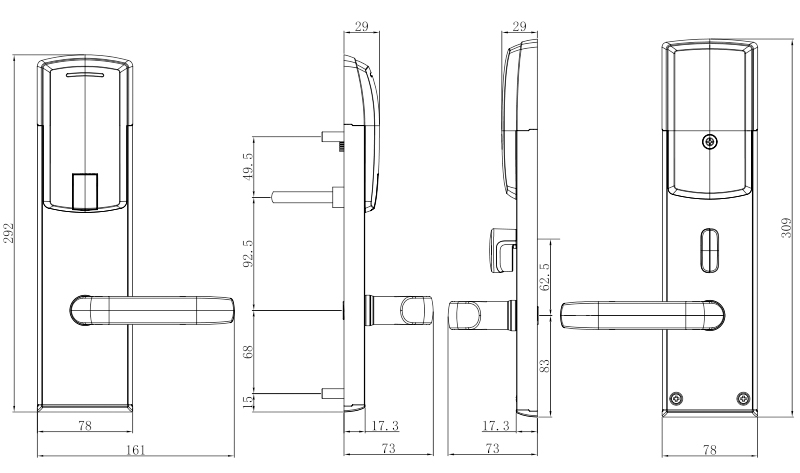 机械钥匙:备用,确保门锁紧急时开启门锁,可按用户定做成单开或通开。