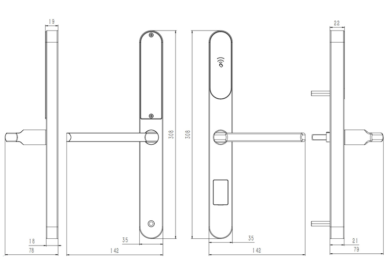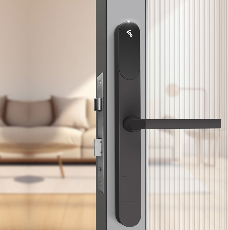 表面工艺:门锁表面铝合金和钢化玻璃结合,CNC工艺,坚固耐用,防破坏性强。 材 质:铝合金材质,与面板同色。 芯 片:采用Mifare-1芯片,密钥量2的32次方,酒店一卡通功能。 电 源:4节5号碱性电池,可正常开启10000次以上。 开锁记录:900条(含机械钥匙开锁记录)。 欠压提示:低于4.7V时开锁会有声光提示,此时还能开门100次左右。 机械钥匙:备用,确保门锁紧急时开启门锁,可按用户定做成单开或通开。 配置锁体:采用国际标准 3585锁体。 适用门厚:35-70mm(特殊门厚需要定制)。